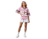 Born Original RiRi the Beagle Jersey - Pink and White Sports Apparel on model with skirt